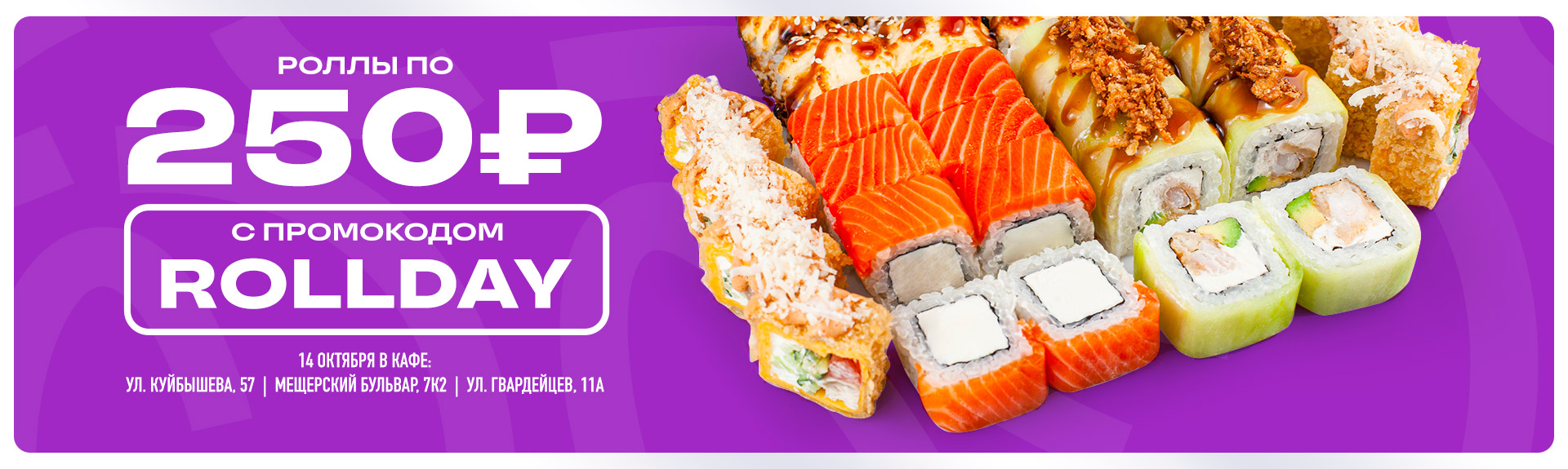 🍣 Наслаждайтесь блюдами с акционным значком «Праздник роллов» всего за 250 ₽, используя промокод ROLLDAY.