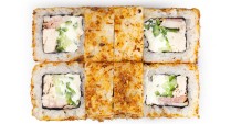 Чикен пармезан сыр сливочный «Cremette», курица вареная, огурец, сыр пармезан, соус "унаги", соус чесночно-сырный, рис, нори